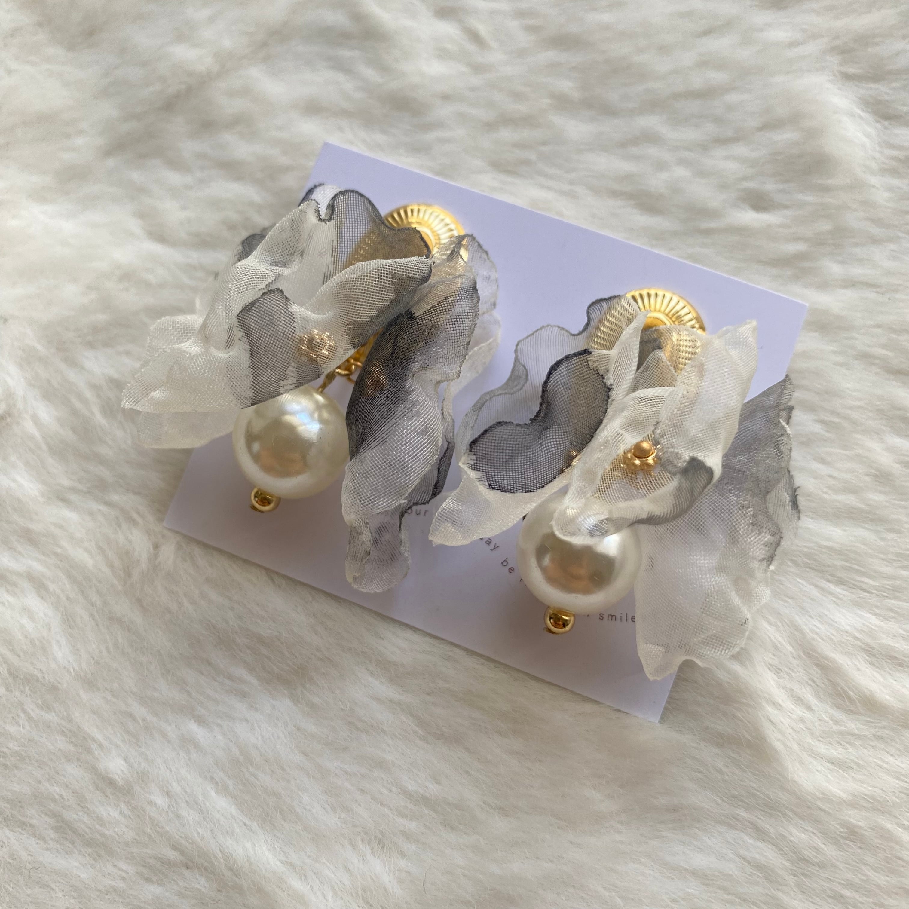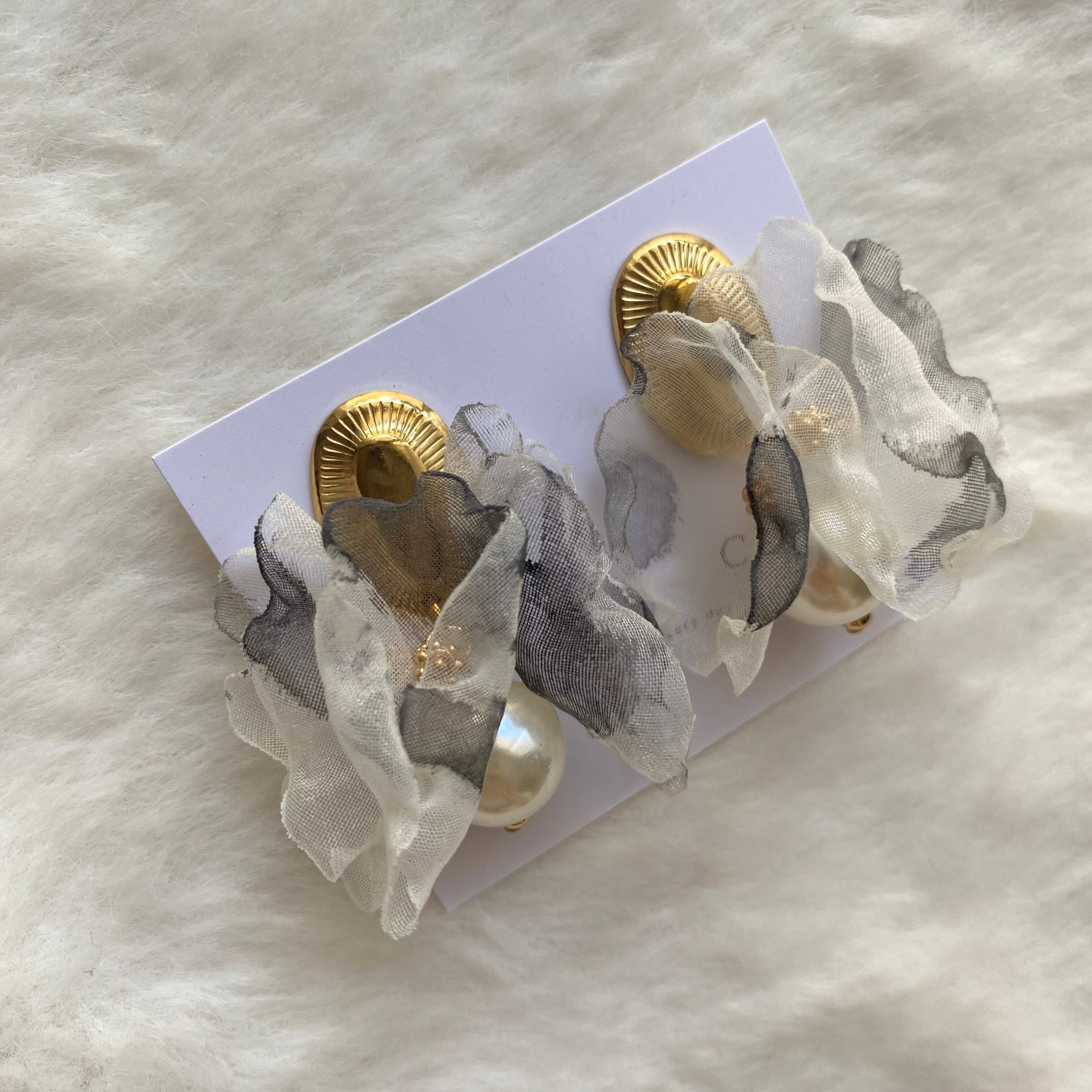 #オーガンジーフラワー #ステンレスピアス #金アレ対応 #華やか #カジュアル #フォーマル #結婚式 #お呼ばれ #シフォンフラワー #チュール #秋ピアス #秋冬 #2025新作 #AW