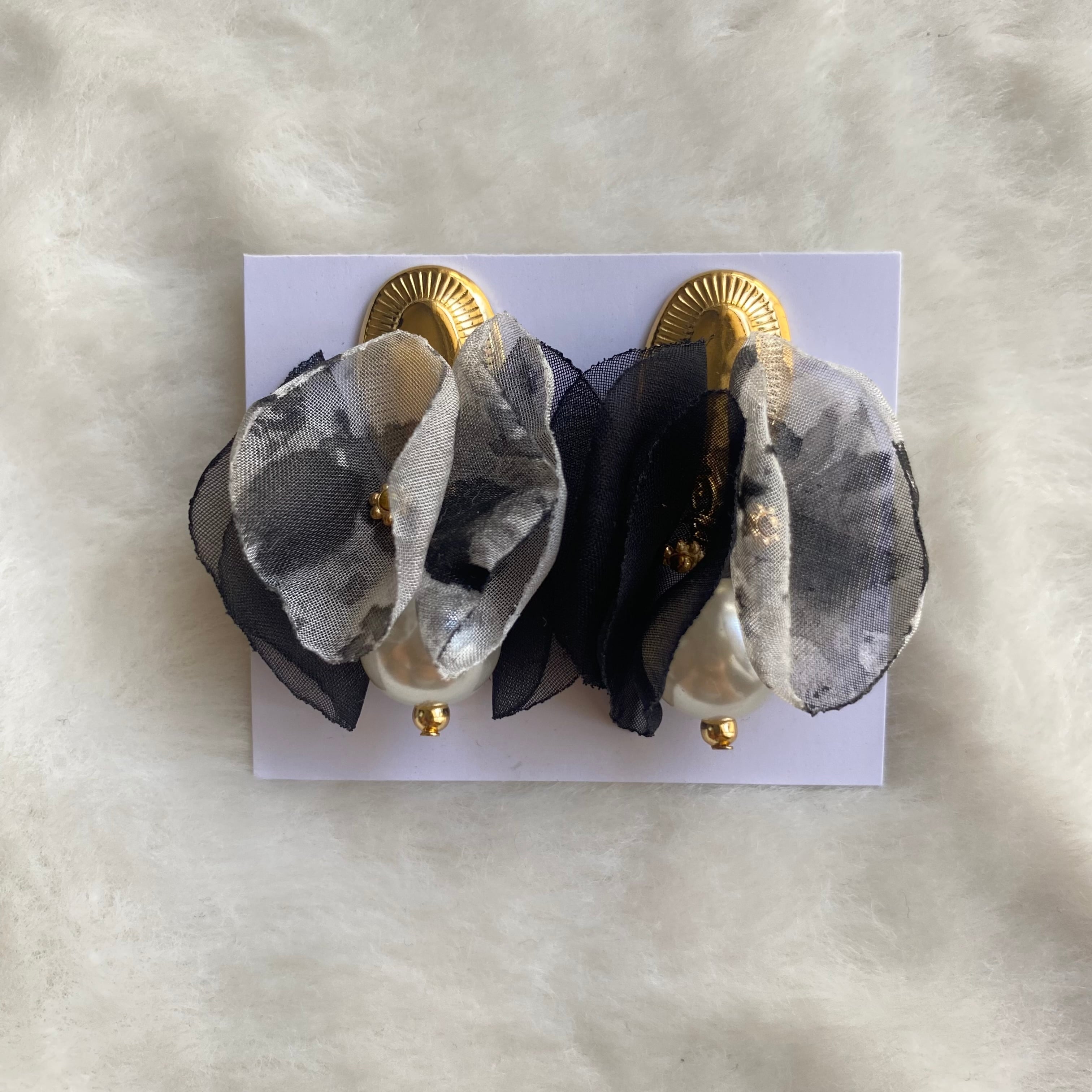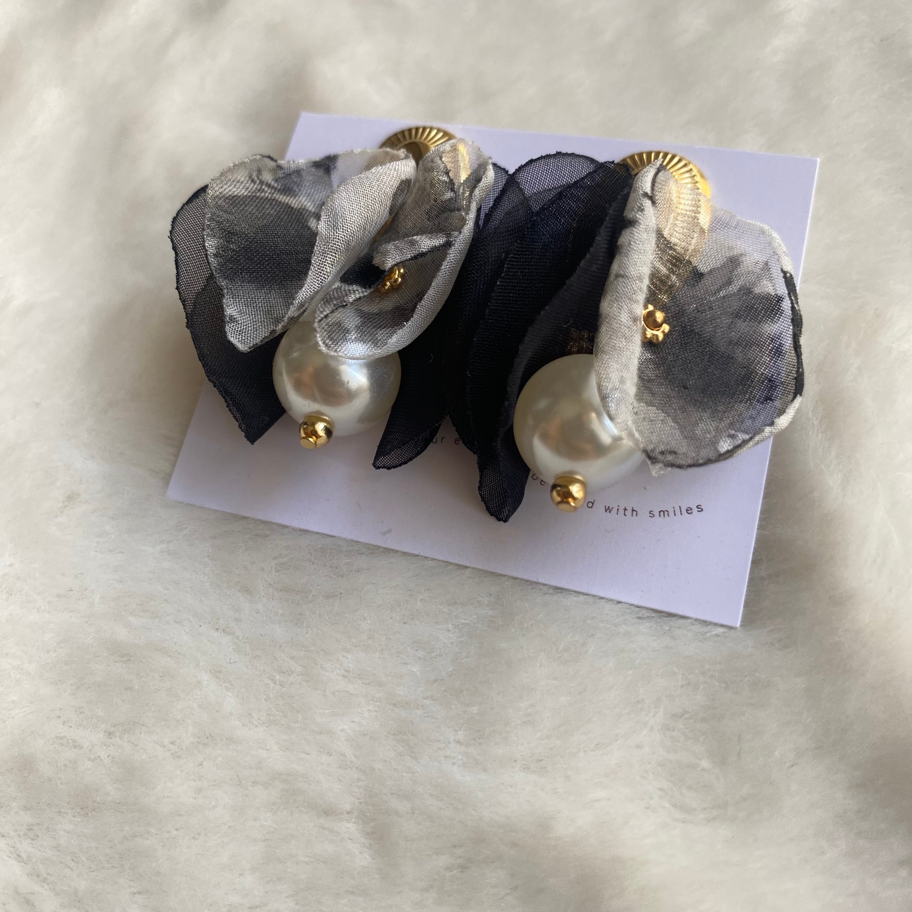 #オーガンジーフラワー #ステンレスピアス #金アレ対応 #華やか #カジュアル #フォーマル #結婚式 #お呼ばれ #シフォンフラワー #チュール #秋ピアス #秋冬 #2025新作 #AW #黒 #ブラック